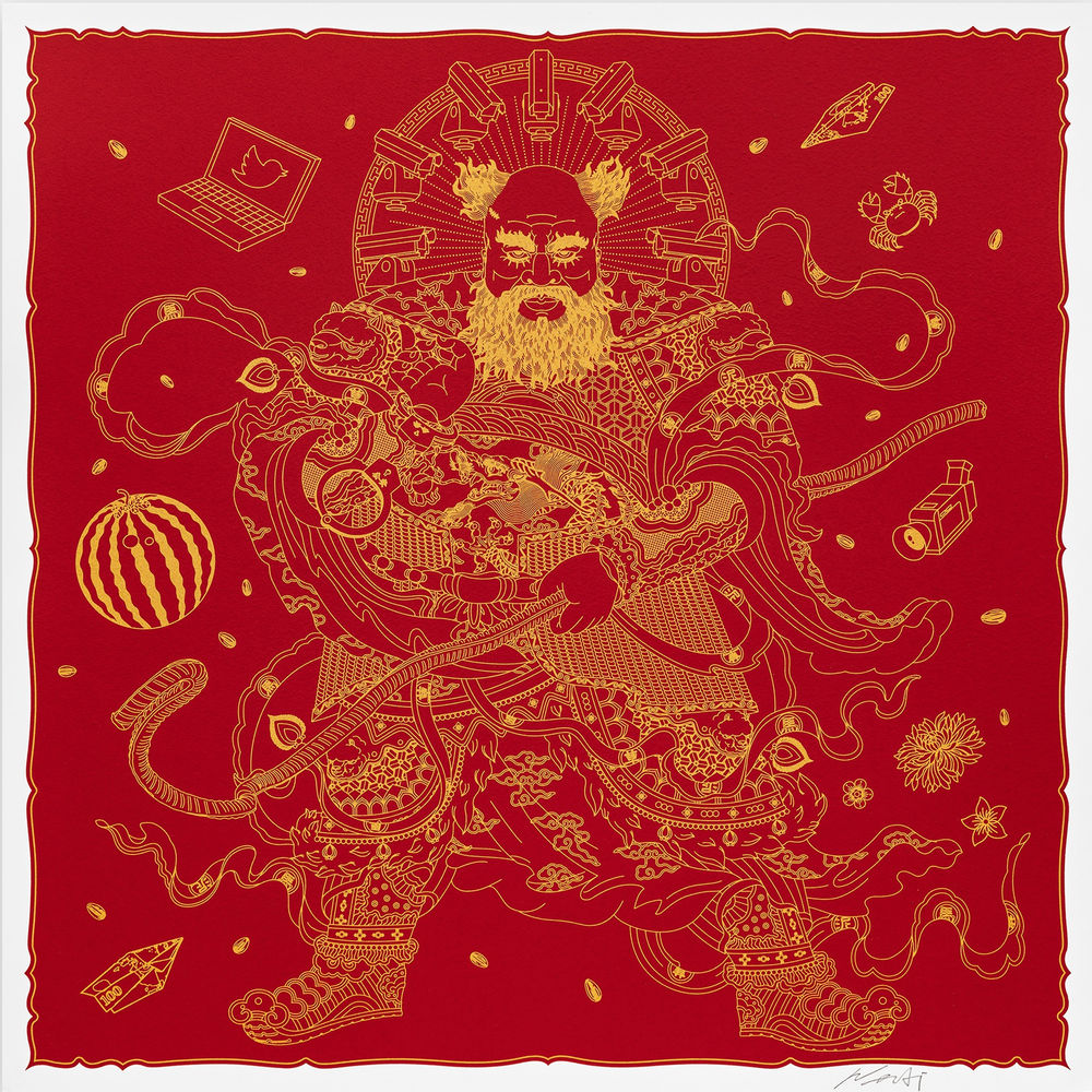 Na tradição chinesa, um Deus da Porta é colocado em entradas ou limiares para proteger os que estão dentro contra o mal. Ao se retratar como essa figura totêmica, Weiwei reconhece seu lugar na consciência global, traça paralelos com sua trajetória como artista e busca uma conciliação entre as duas dimensões.